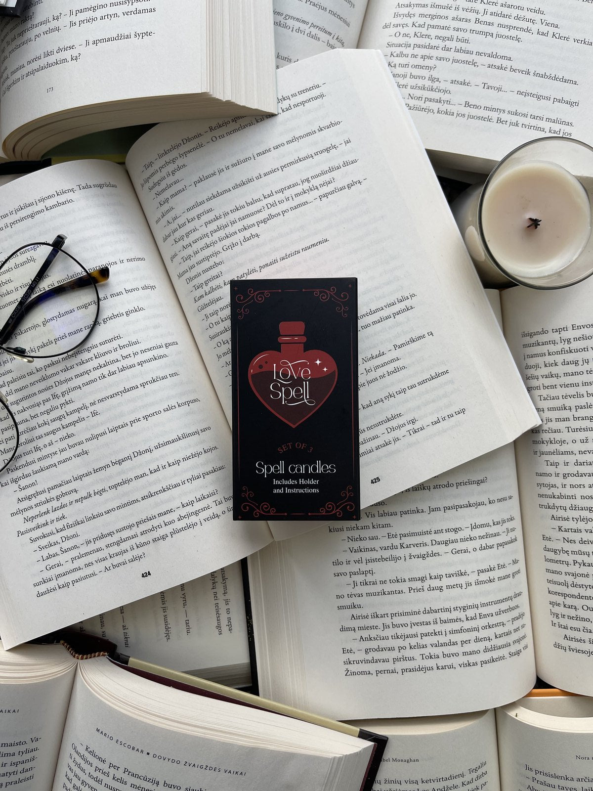 Bring a little magic into your love life with this set of 3 spell candles. Each unscented candle burns for around 1 hour, perfect for rituals, intentions, or romantic moments. The set comes in a sliding matchbox-style holder with full instructions included. Matches not included.