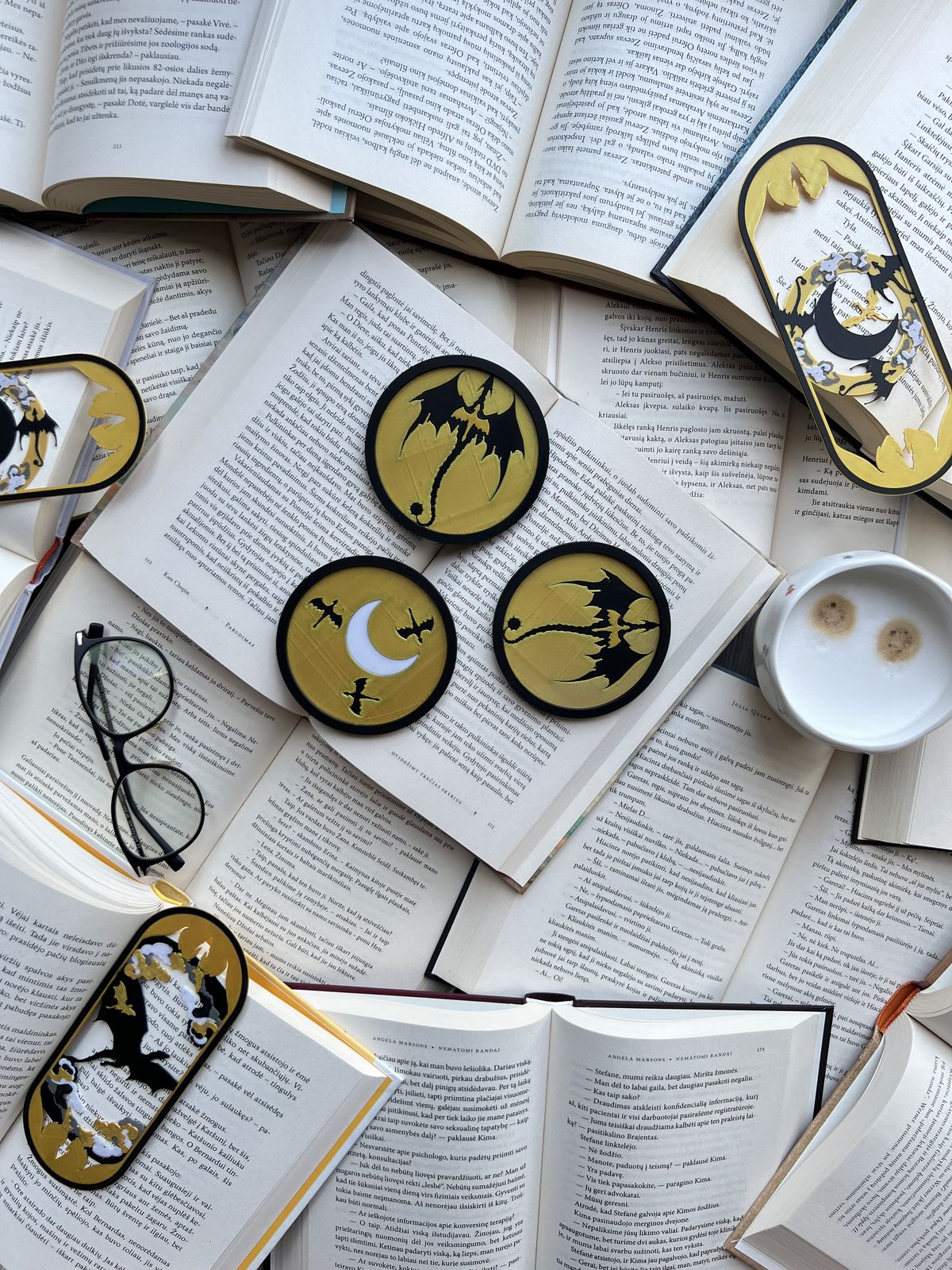 Įspūdingas 3 padėkliukų rinkinys, įkvėptas „Fourth Wing“ pasaulio. Su drakono ir mėnulio motyvais – šie padėkliukai apsaugos jūsų stalo paviršius ir suteiks kavos ar arbatos ritualams fantastinės magijos. Puikus aksesuaras skaitytojams ir gerbėjams, norintiems į kasdienybę įnešti Basgiath nuotaikų.