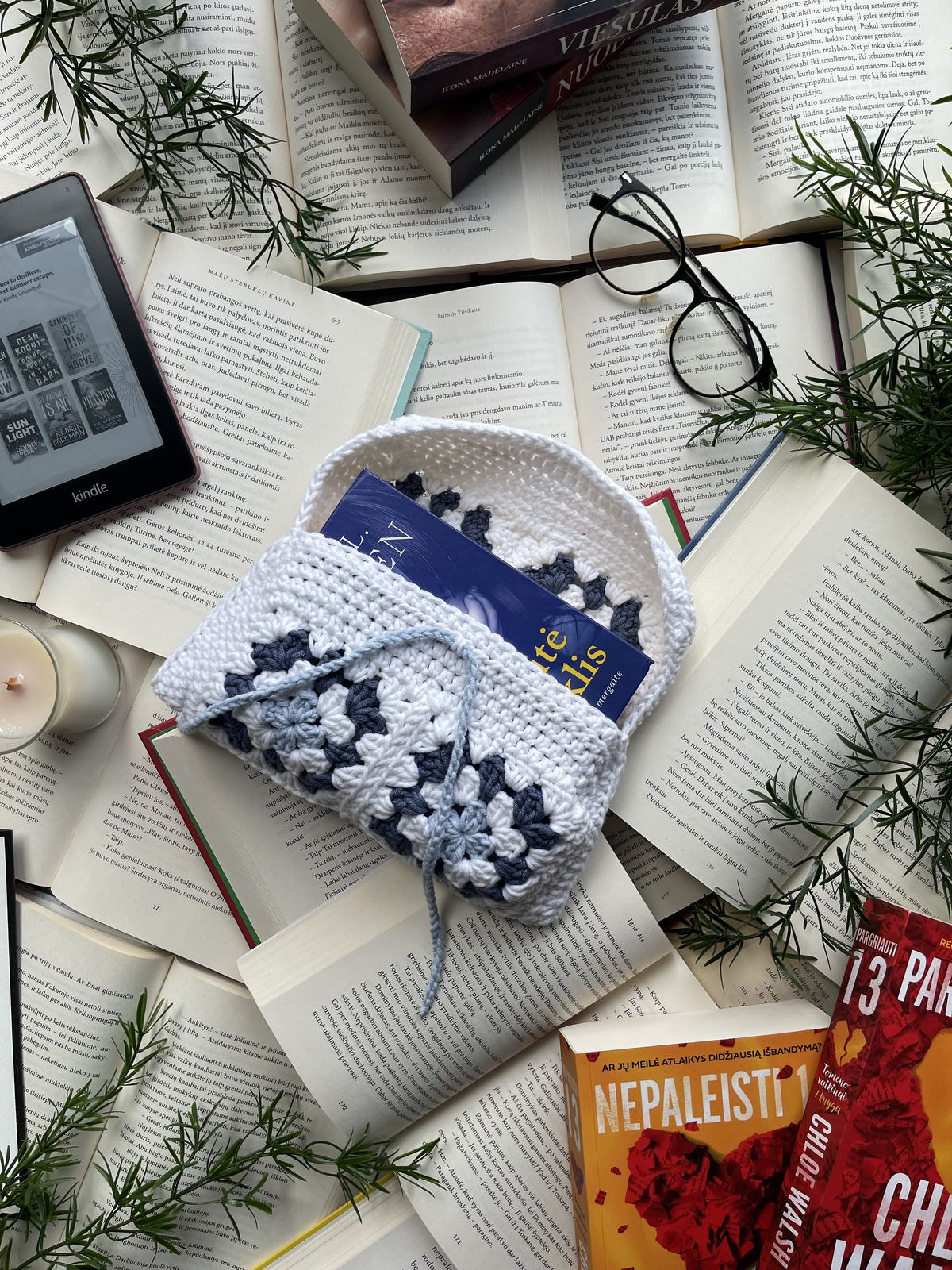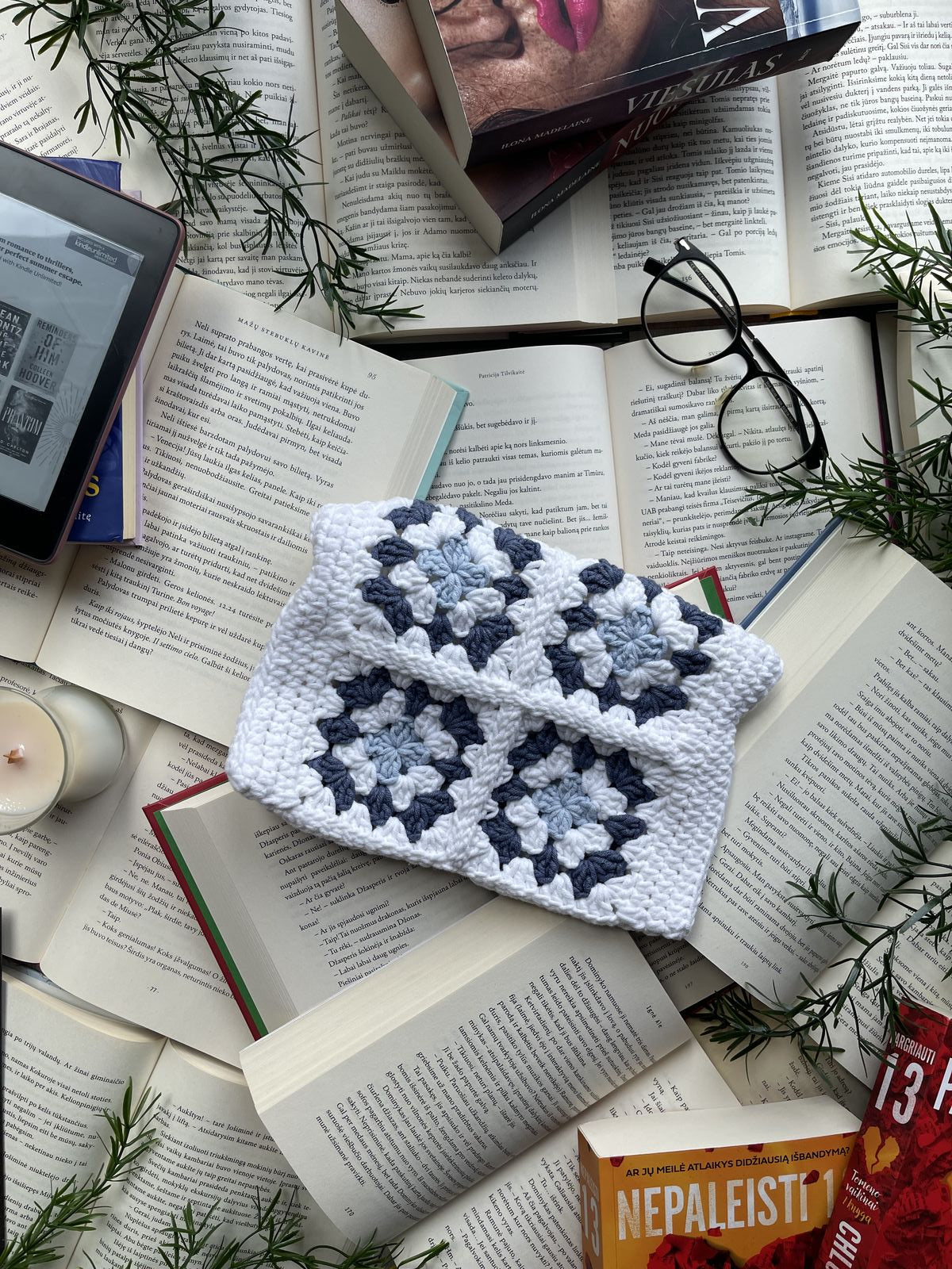 Minkštas ir jaukus nertas dėklas, skirtas mažo formato knygoms. Švari balta spalva ir vėsūs mėlyni akcentai suteikia dėklui gaivų, žiemos įkvėptą įvaizdį — puikus pasirinkimas mėgstantiems ramius tonus ir švelnias tekstūras.