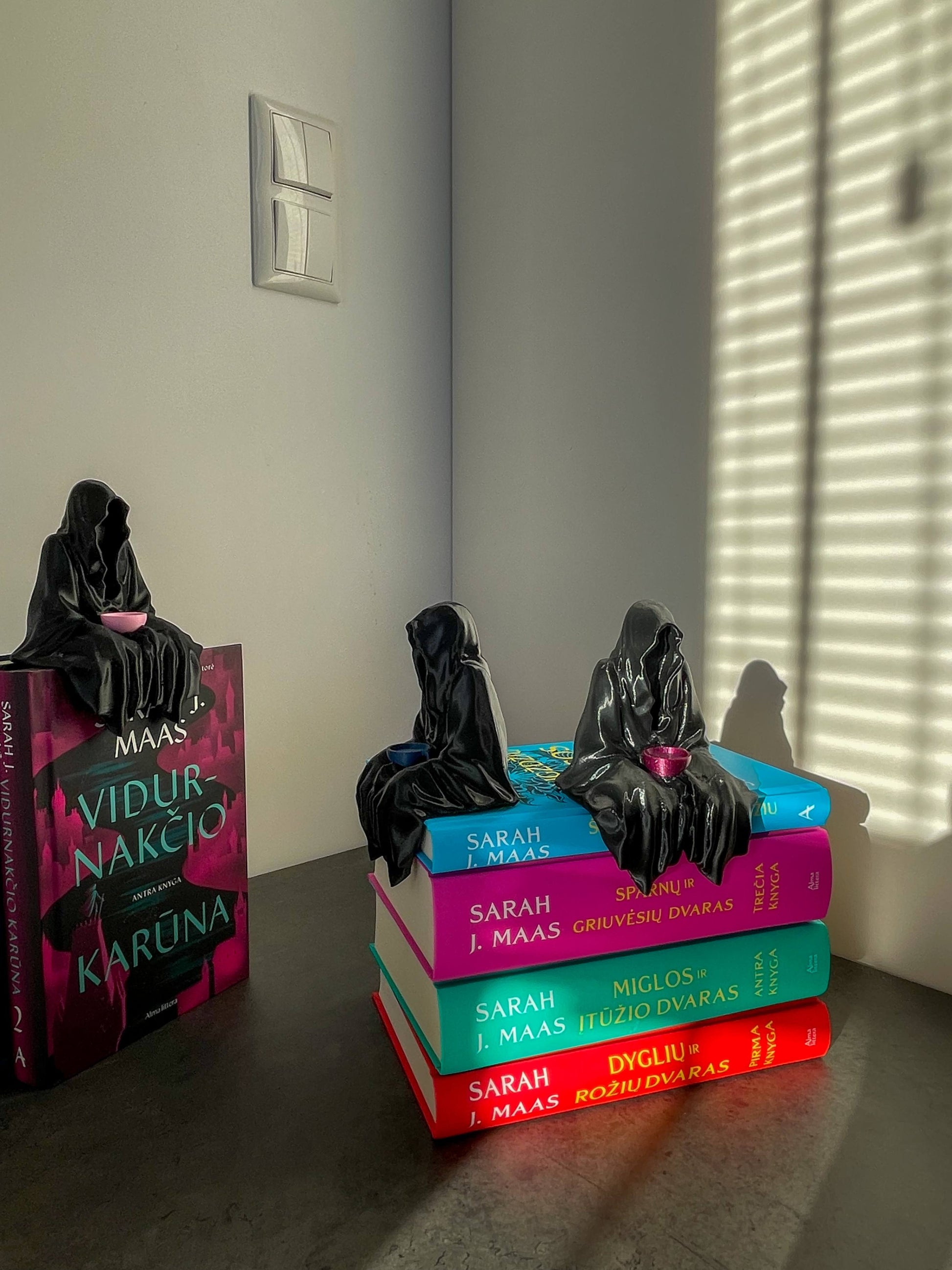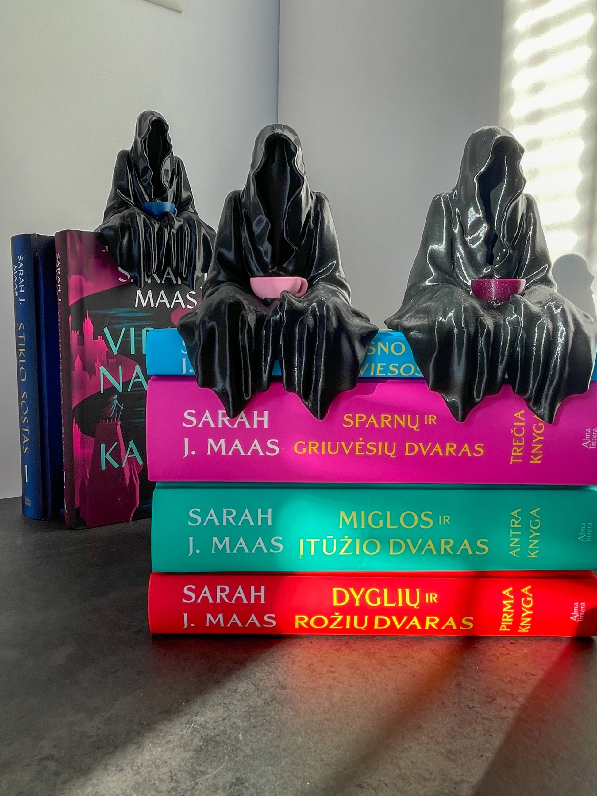 Miniatiūrinė paslaptingojo Suriel figūrėlė iš ACOTAR pasaulio. Elegantiška ir šiek tiek šiurpi dekoracija, suteikianti jūsų lentynai ar skaitymo kampeliui Pritijano magijos. Puikiai tinka kolekcionieriams ir fantastikos mylėtojams.