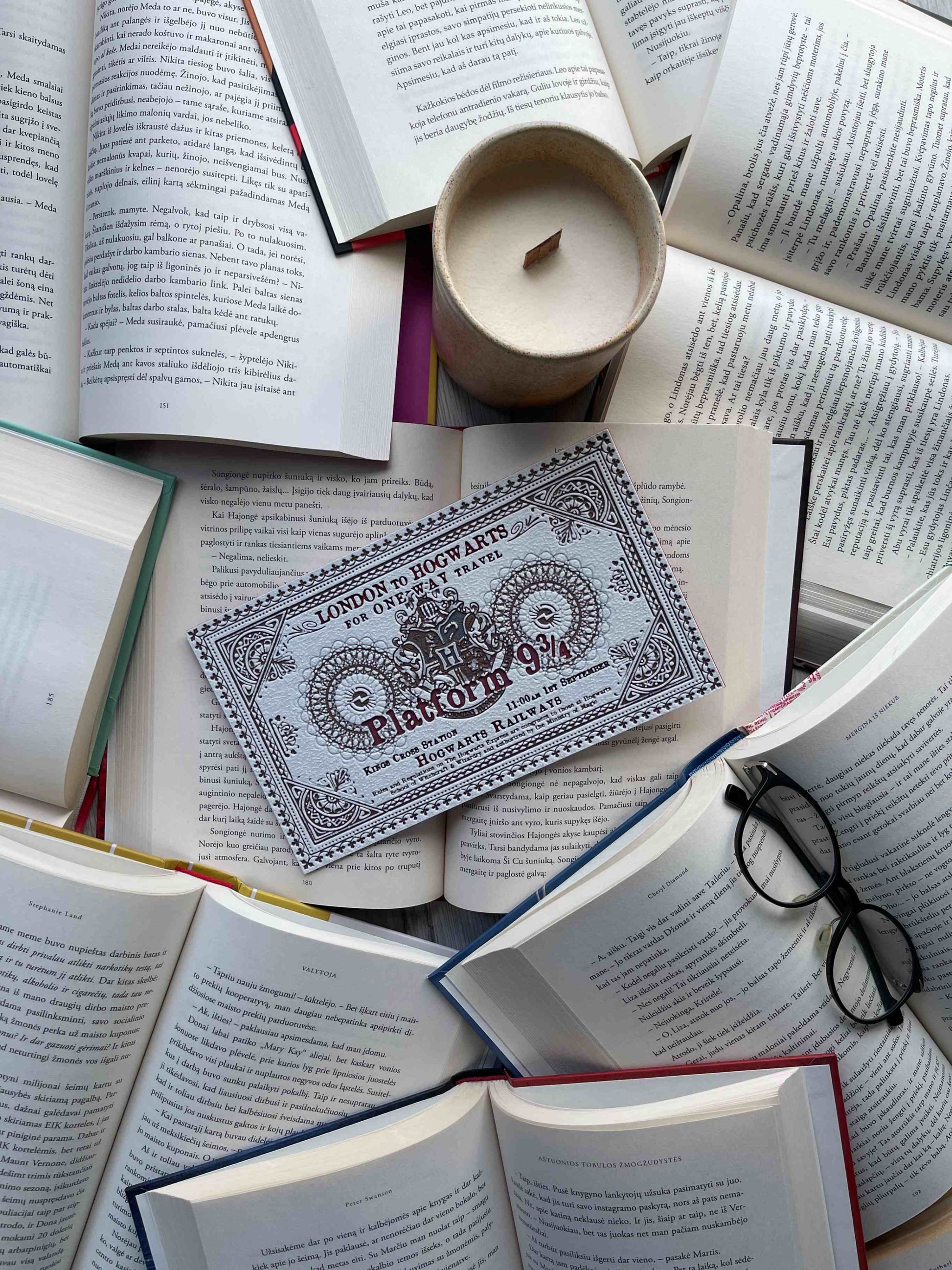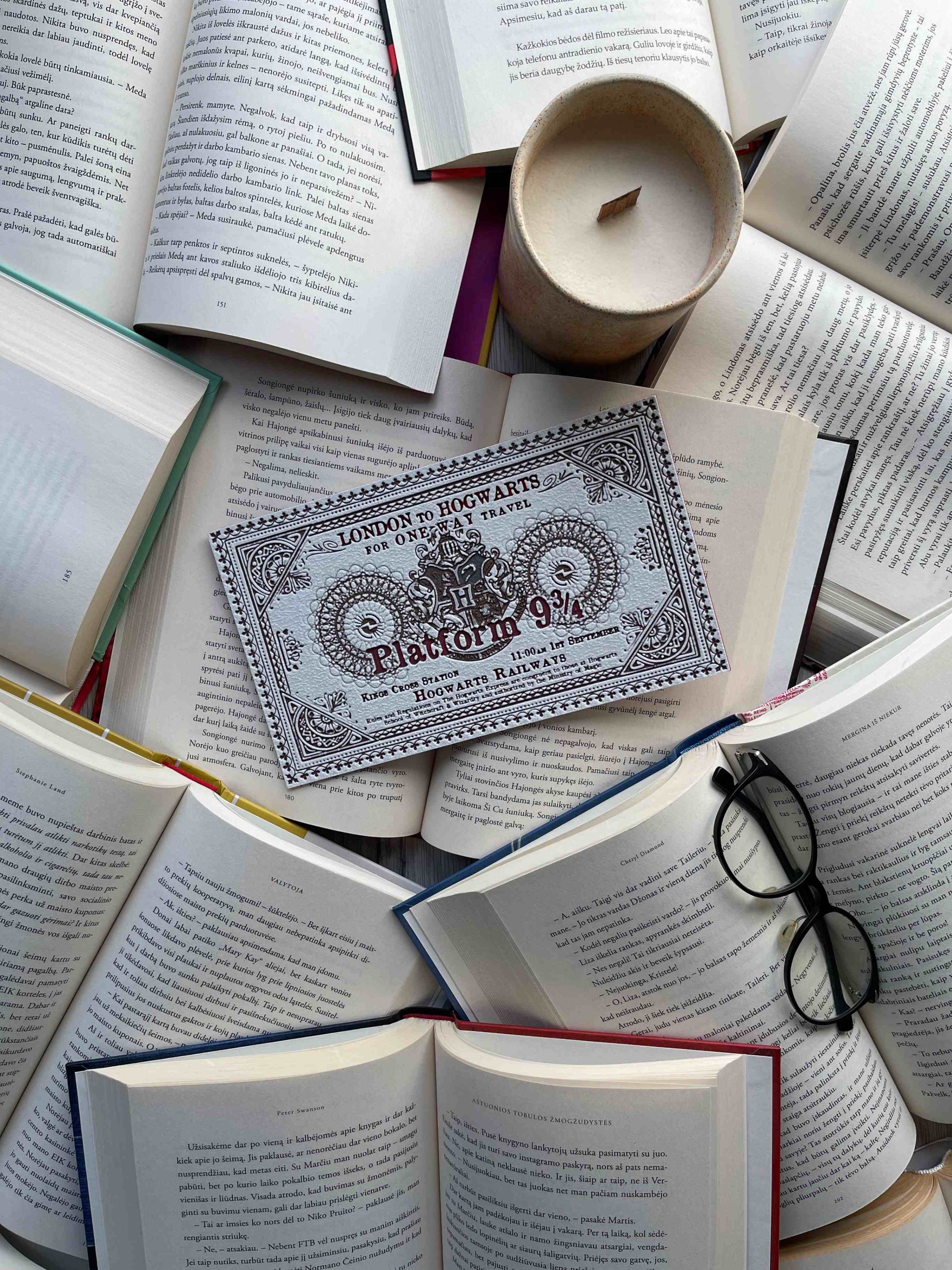 Detalus „Hogwarts Express“ bilieto atkartojimas su iškilia tekstūra – magiškas suvenyras kiekvienam Hario Poterio gerbėjui.